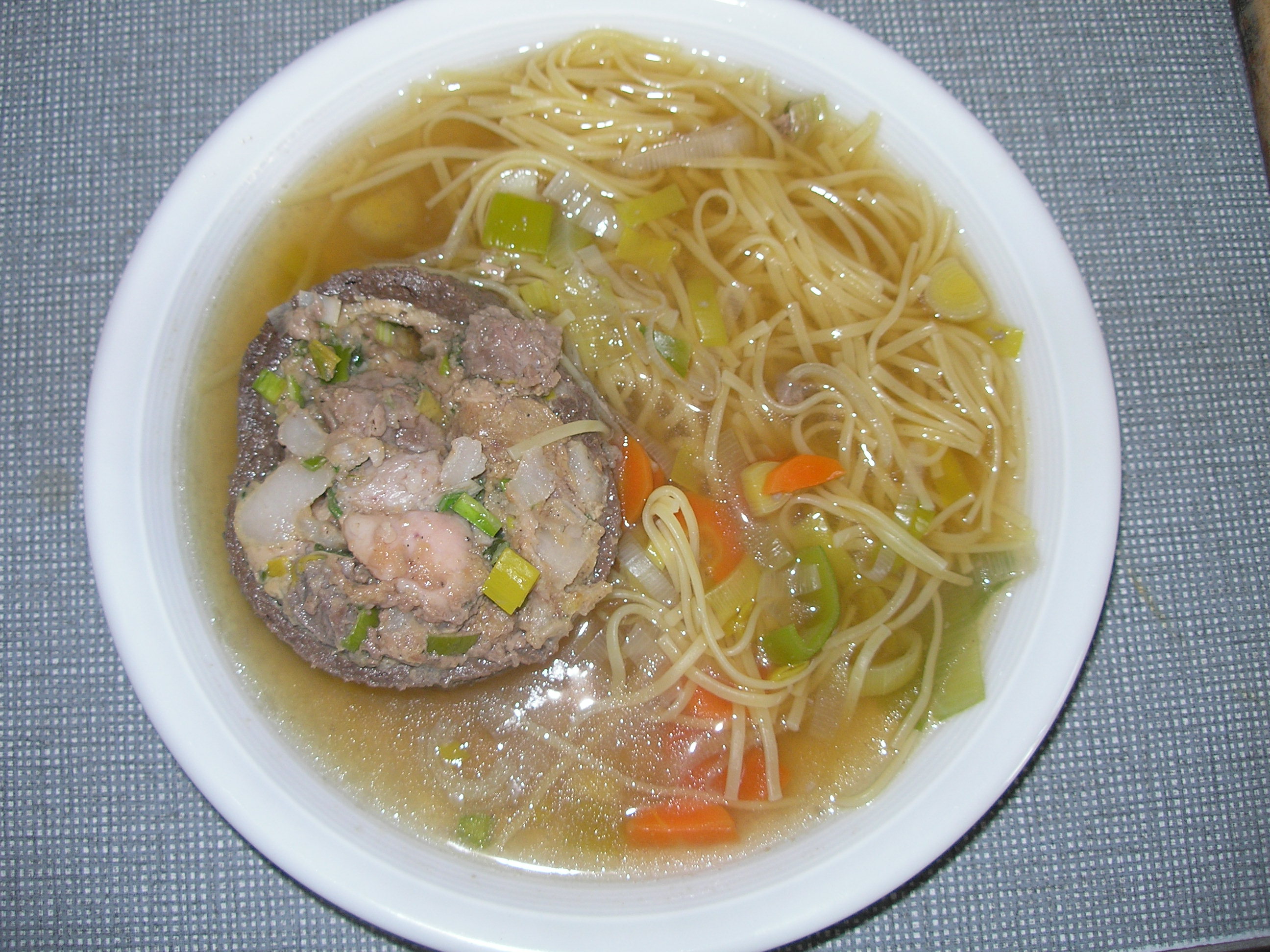 Geigenmehl eingefüllt und zugenäht, in der Fleischbrühe