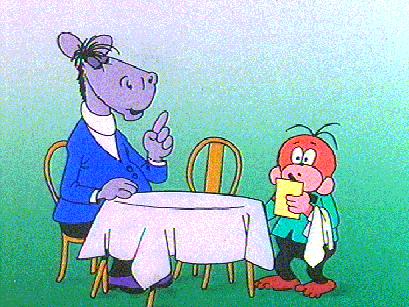 Pferdle: "Sodele, i hett gern zwoi harte Eier, verkohlta Toascht, stoiharte Butter, eikalta Speck ond an lauwarma Kaffee."