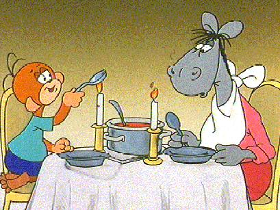 Äffle: "Woisch, d'Supp isch so saukalt, jetzt miaßat mer d'Leffl heiß macha!"