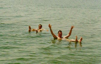 Ein Bad im toten Meer. Angenehm war daß wir wegen der Beziehungen